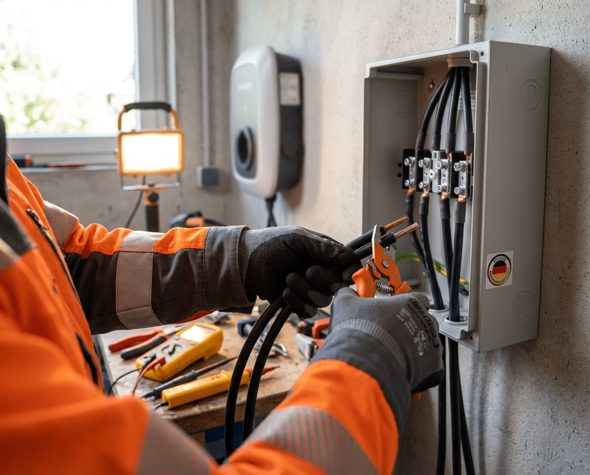 • Für 11 kW Wallbox: mindestens 5×2,5 mm² (optimal bis 20 m, ab 25 m Spannungsfall prüfen lassen)
